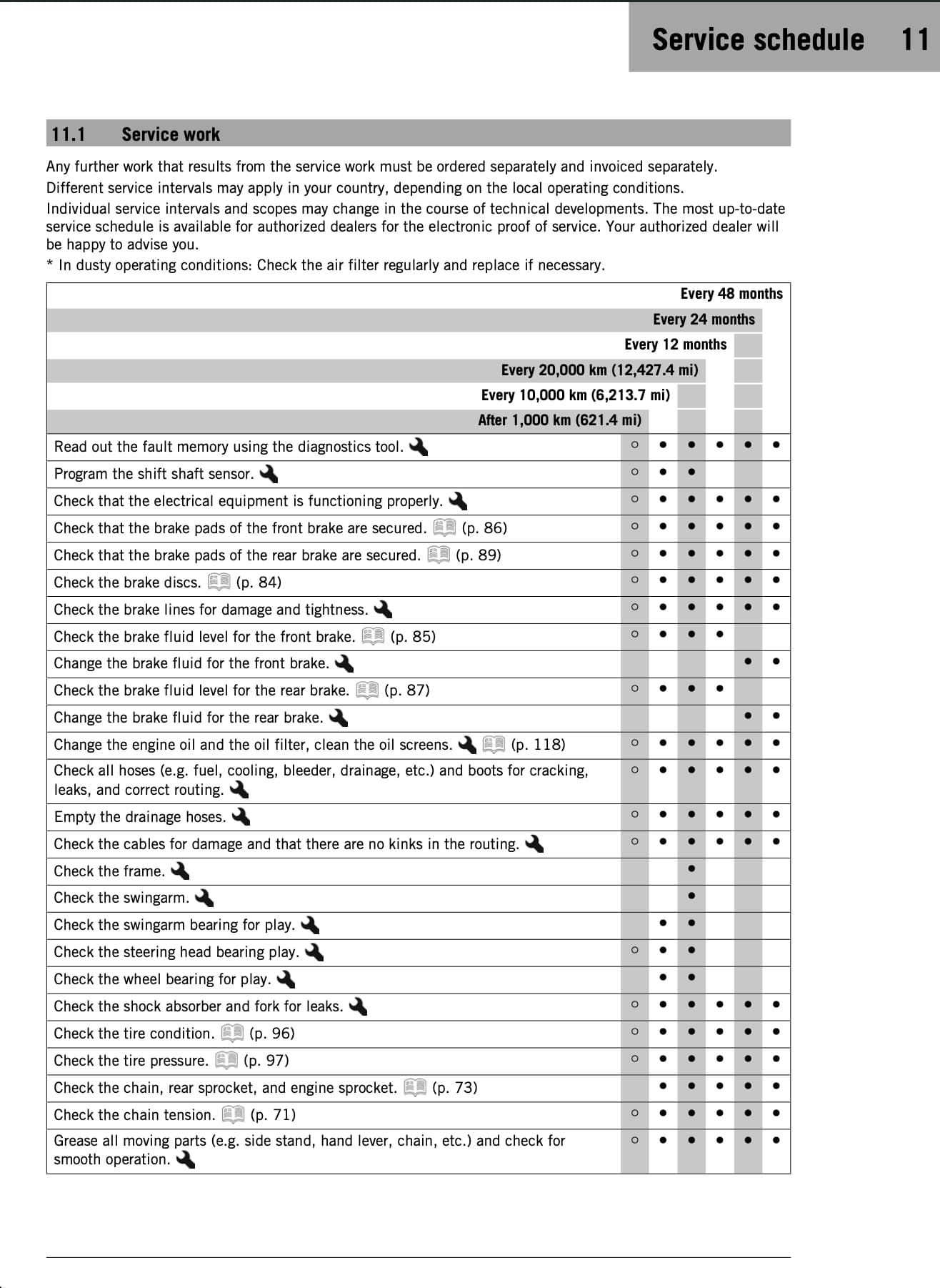 KTM 390 Adventure (2025+) Maintenance Schedule